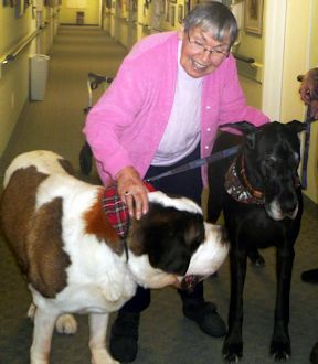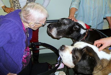 Jacqueline Faubert brought her Christmas "Elves," two of her dogs, "Tadley" and "Atticus," for a visit with residents at Tiverton Park Manor. The residents were thrilled to get up close and personal with their canine friends.