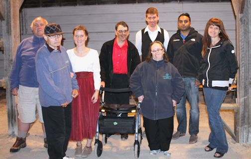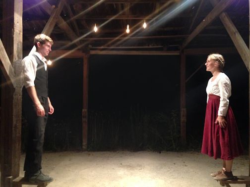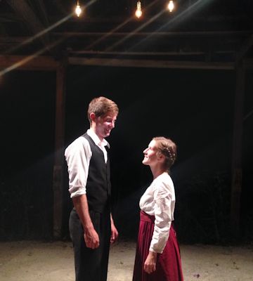 The stage is remarkable, set as a theatre-in-the-round with the audience seated all around the action, while the actors climb the rafters of the barn. It is an intimate setting in the old and historic Mahood lumber sheds which have been beautifully transformed into a magical performance space for this show.