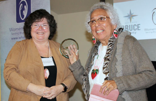 Elder Shirley John, also known as Strong White Buffalo Woman, of Saugeen First Nation, was awarded the Woman of Distinction award at the International Women’s Day celebration, held March 10, at the Kincardine Pavilion.