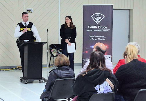 Detective constable Melissa Barfoot (left) of the South Bruce OPP gives a human-trafficking awareness presentation in Kincardine
