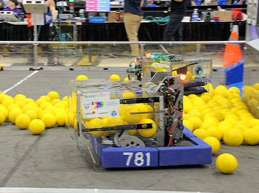 FRC Team 781's robot competes in qualifying matches at the Ontario District competition in Windsor on the weekend