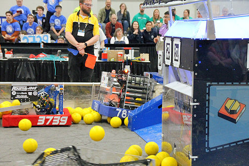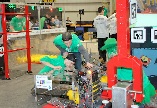 But despite having its robot perform admirably in the qualifying matches, becoming captain of Alliance 6, and making it to the playoffs, the team and its alliance partners ended up on the short end of the scoreboard twice and were eliminated.
