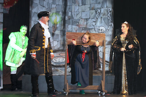 While the cast brings much to the wild and zany atmosphere of the play, the stand-outs are the three witches played by newcomers Patti Kell as Granny Weatherwax and Savannah DeLuca as Magrat Garlick, and veteran Jenn White as Nanny Ogg.