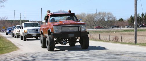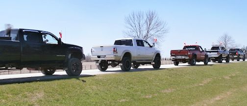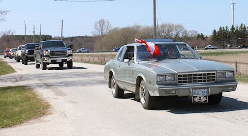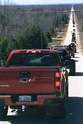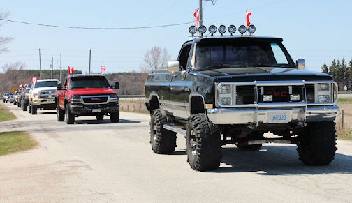 More than 100 trucks, and a couple of cars, gathered Saturday, May 2, for the inaugural Clint Parker Memorial Ride. The 18-year-old was killed in a snowmobile accident Feb. 15, near MacGregor Point Provincial Park.